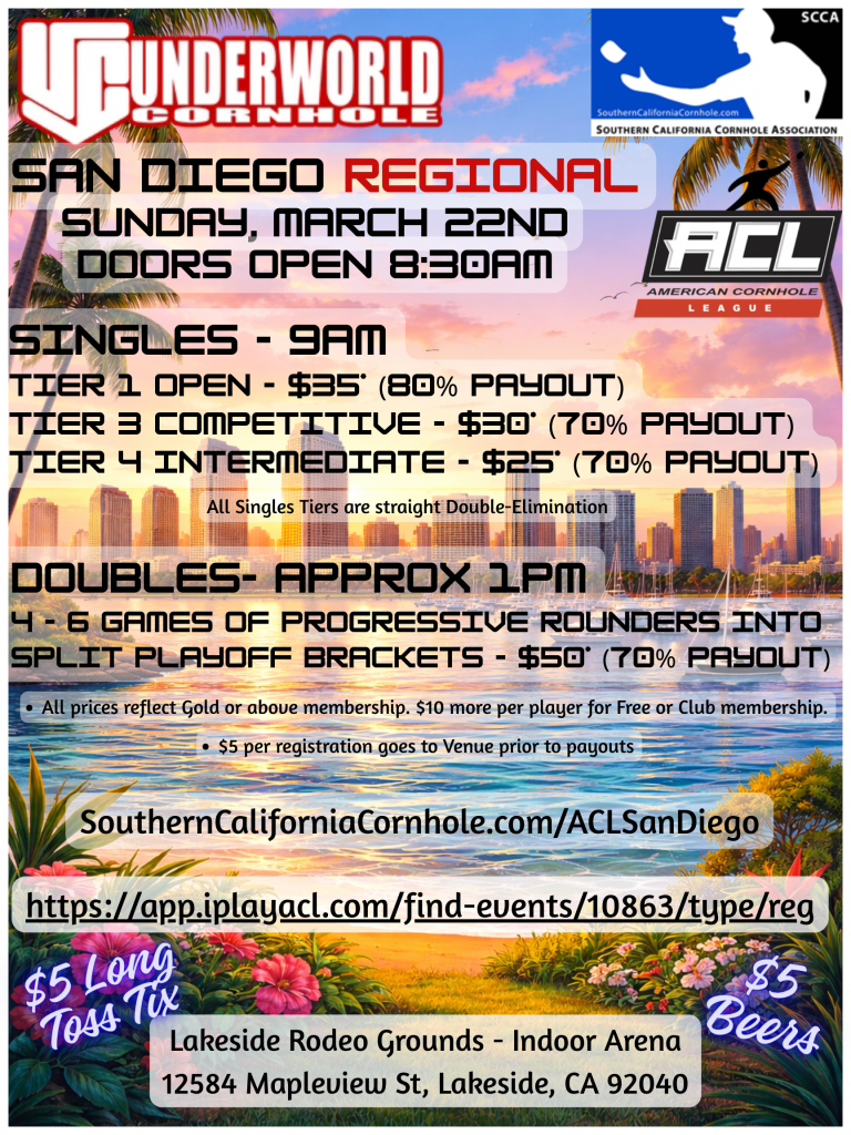 Taking place in an indoor facility at the Rodeo Grounds complex, we will run 3 Tiers of ACL Singles at 9am and BYOP Doubles Rounders into split playoff brackets at approximately 1pm, or when Singles ends.